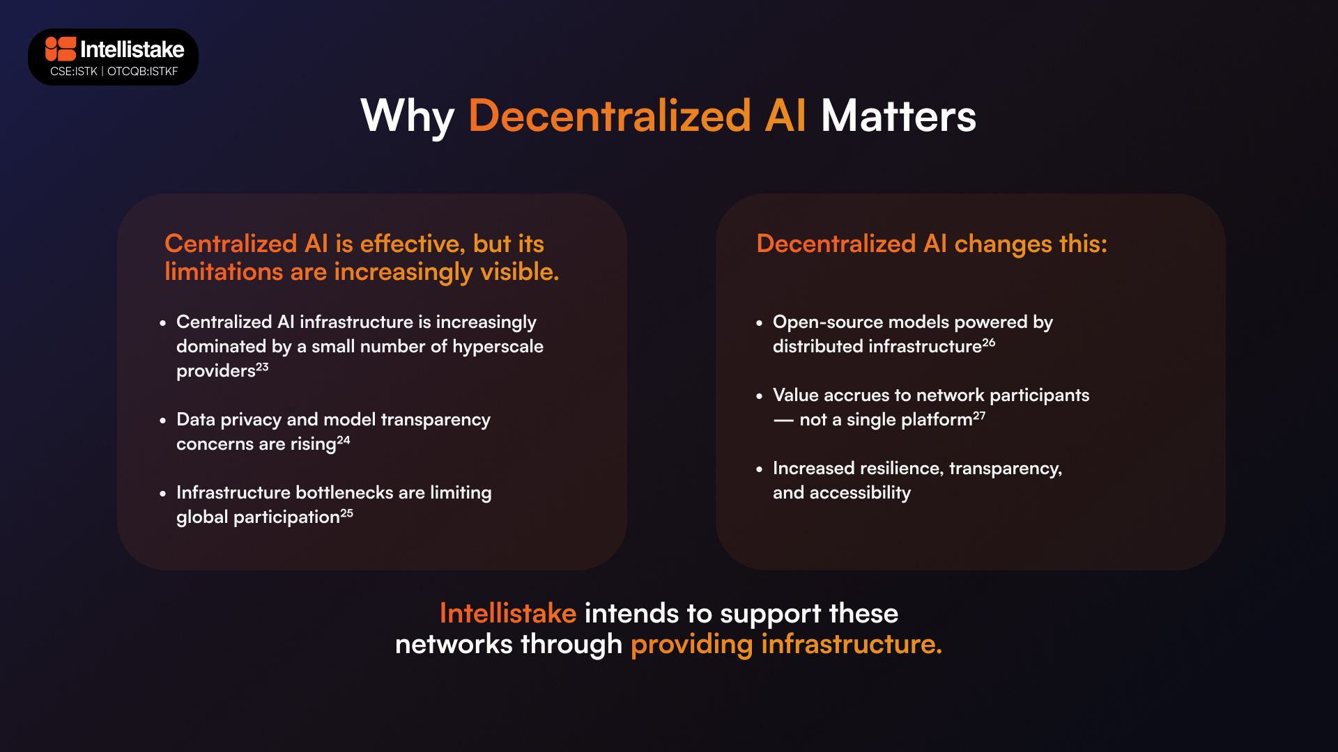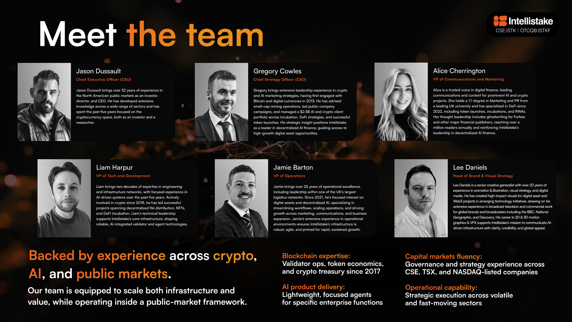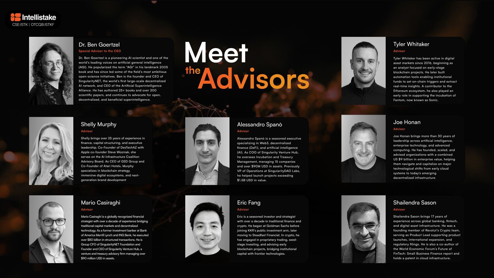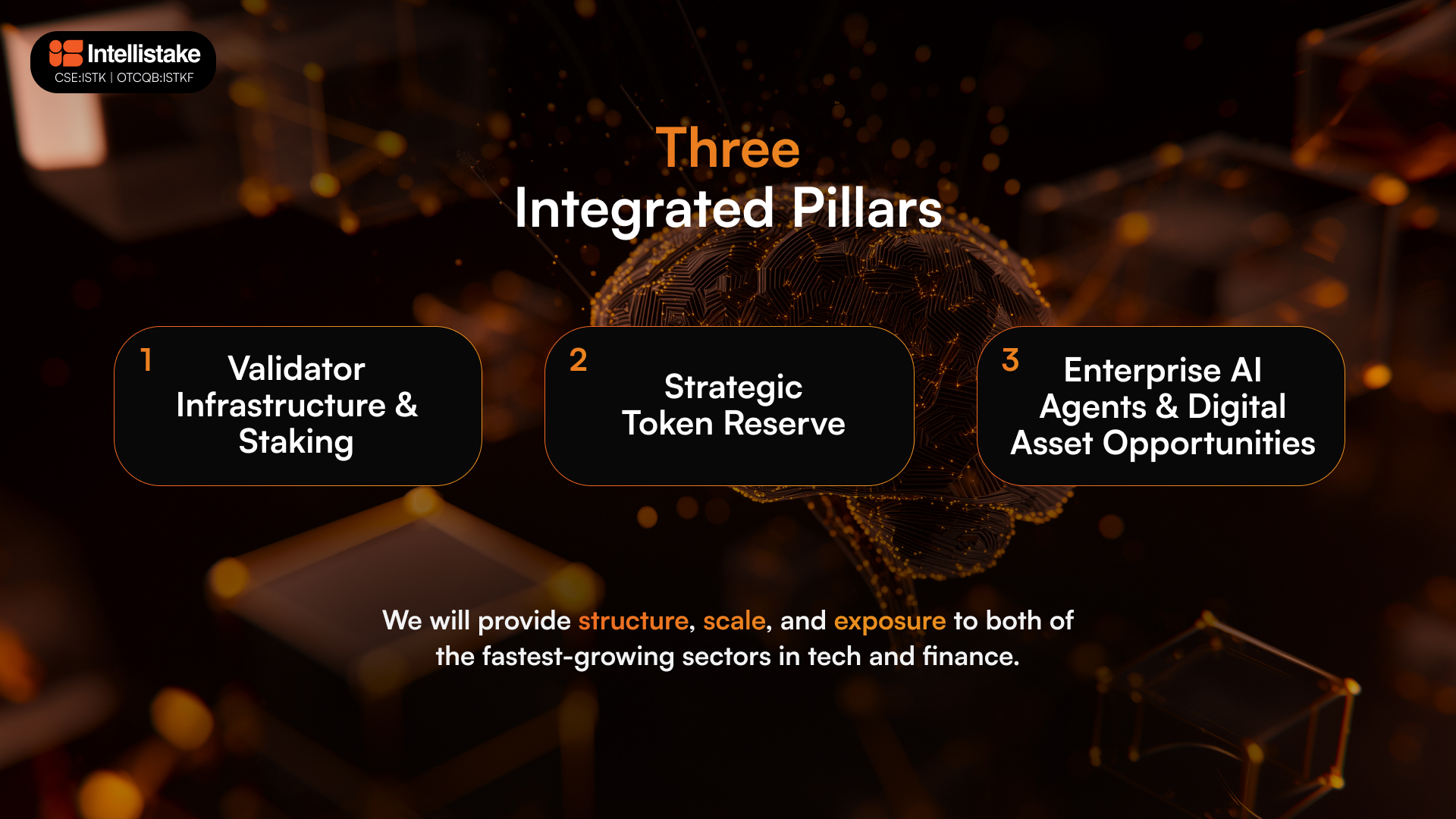Intellistake will pair crypto's growth with exposure to AI—forecasted to boost global economic output by $13 trillion by 2030—through AI solutions and blockchain infrastructure. Intellistake will positioning itself at the forefront of two growing sectors.